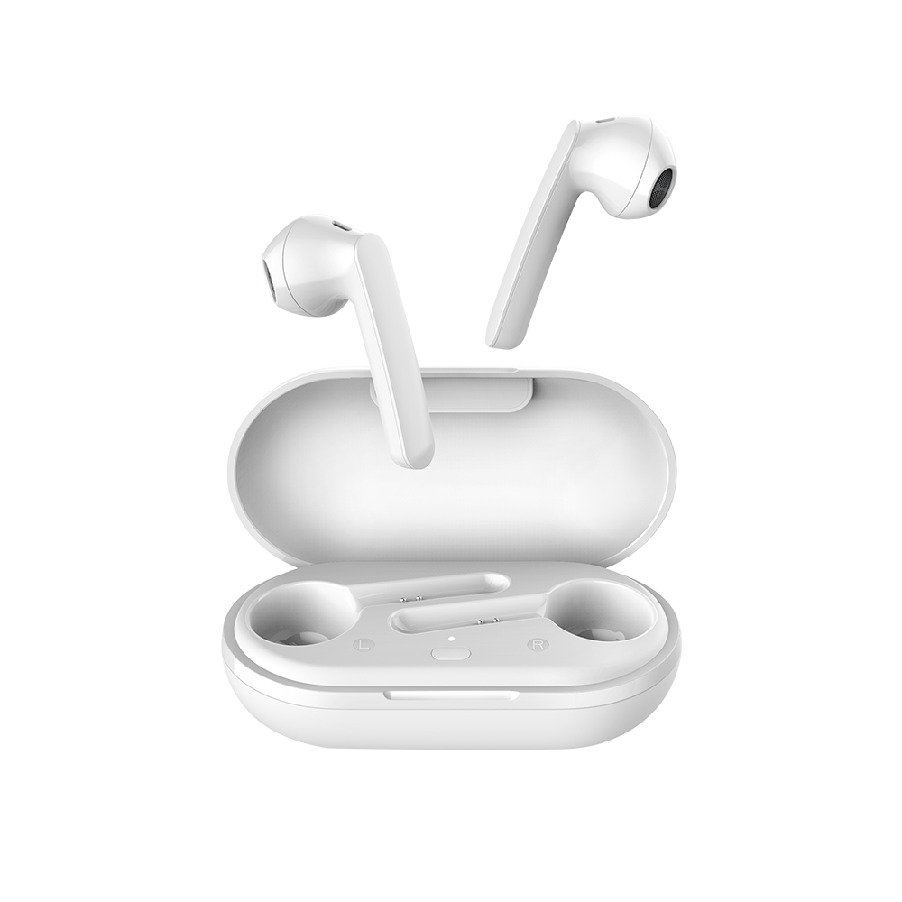 199سماعات أذن لاسلكية من Powerology True Stereo Buds، مدة تشغيل تصل إلى 16 ساعة، بلوتوث 5.0، ملاءمة عالمية آمنة، تحكم باللمس، سعة بطارية 500 مللي أمبير في الساعة - أبيض